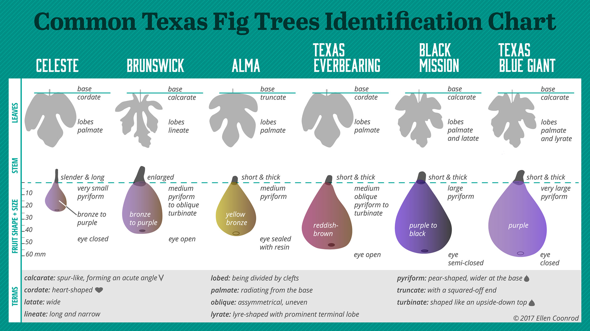To construct vector infographic for identifying common Texas figs that is scalable to any size and optimized for the web